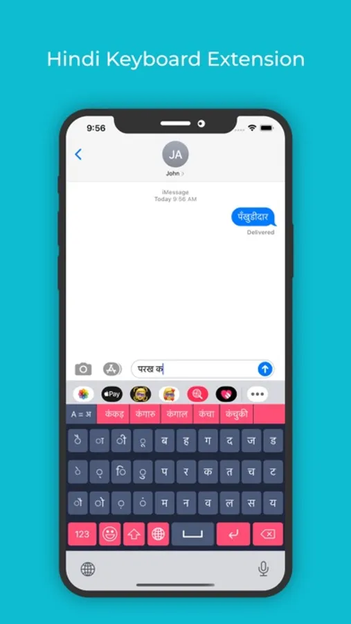 • Another important feature in the Hindi keyboard and Translator, and one that makes this the best Hindi keyboard and Translator for iOS is its adaptability with apps. Use the keyboard extension feature to type Hindi directly into any app.