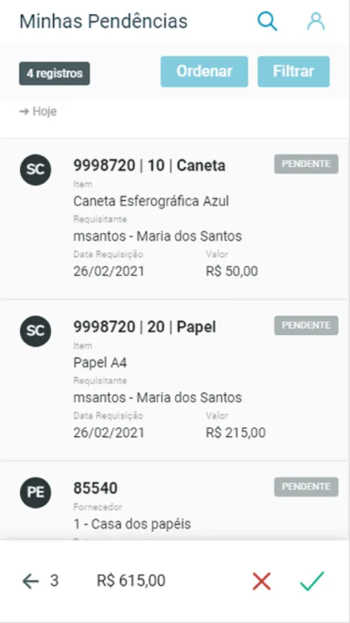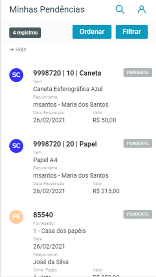 - Aprovar e/ou rejeitar uma pendência com um simples arrastar de dedo.
