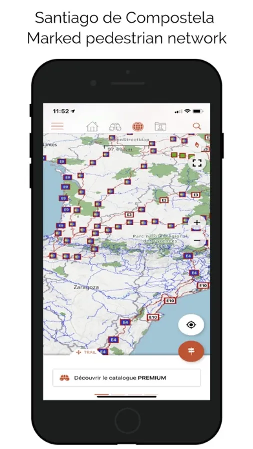 • Discover GR hiking paths, European hiking routes, Santiago de Compostela routes for pilgrims, etc.