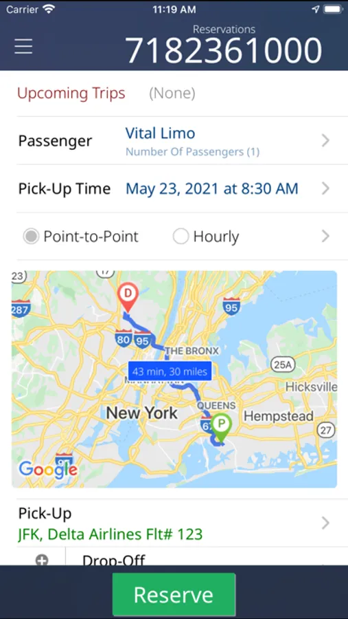 Book future or immediate Black Car services through our easy to use app. Create your reservation in seconds, see the status, location and contact information of your car and review prior trips. Enjoy the size, reliability, safety and convenience that our company offers in the palm of your hand!