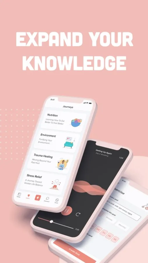 Learn: Get educated and complete challenges through personalized journeys, catered to your own needs on your path toward self improvement. You can also learn mindfulness practices and other techniques to lead you to a healthier relationship with your mental health.