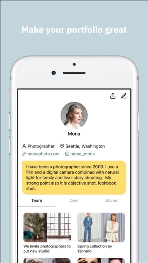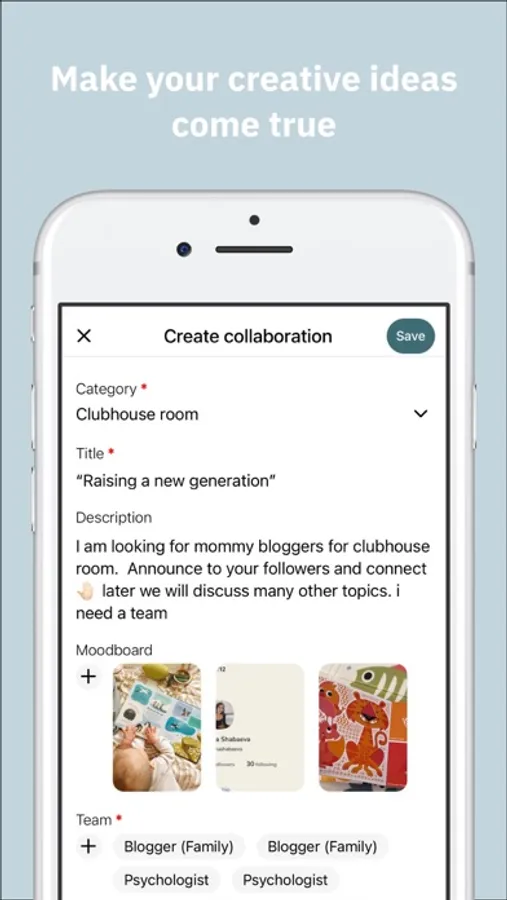 Our app allows creative people to find collaborators, improve their portfolio and get followers fast, and boost their career as well as a gain new experience, and connect with like-minded people.