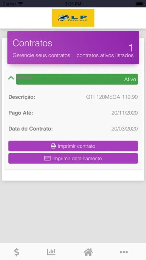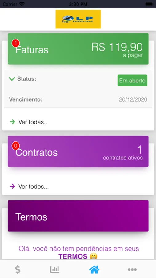 Aplicativo feito para acompanhar o consumo de internet,pagamentos de faturas e efetuar assinatura de contrato.