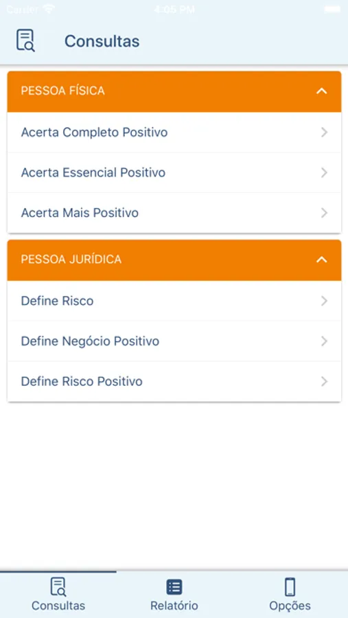 Além das consultas mais habituais, e o score de crédito, também estão disponíveis neste aplicativo as consultas das famílias Acerta e Define.