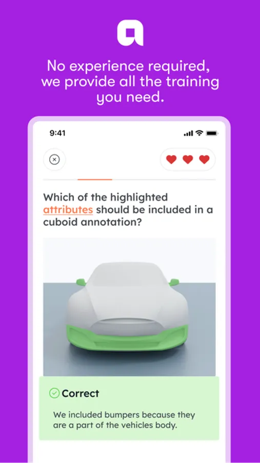 Follow in-app modules that will show you how to do data annotation in our platform and practice before getting started. It’s so quick and easy that anyone can learn to do this work with us!