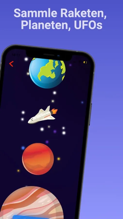 - Sammle kosmische Gewinne: Von Planeten, über Raumschiffe, UFOs bis hin zu schwarzen Löchern.