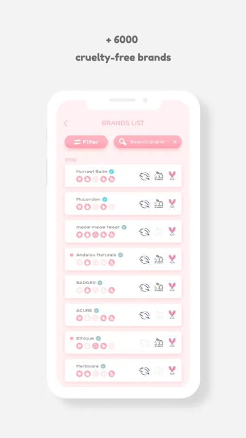 • +6000 brands: from official and reliable sources, including Leaping Bunny, PETA, Choose Cruelty Free.