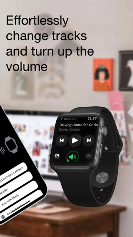 This is the simplest and cleanest way to control your Sonos speakers from your Apple Watch. Change songs, turn up the volume and check out the cover art. Effortlessly switch between all your Sonos speakers and control all of them individually.