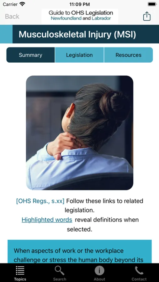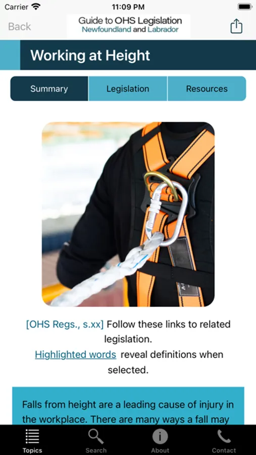 When downloaded on your device, you can search and browse summaries and legislation. When connected through the Internet or WiFi, you can view resources and links, submit feedback about the app, and receive update notifications.