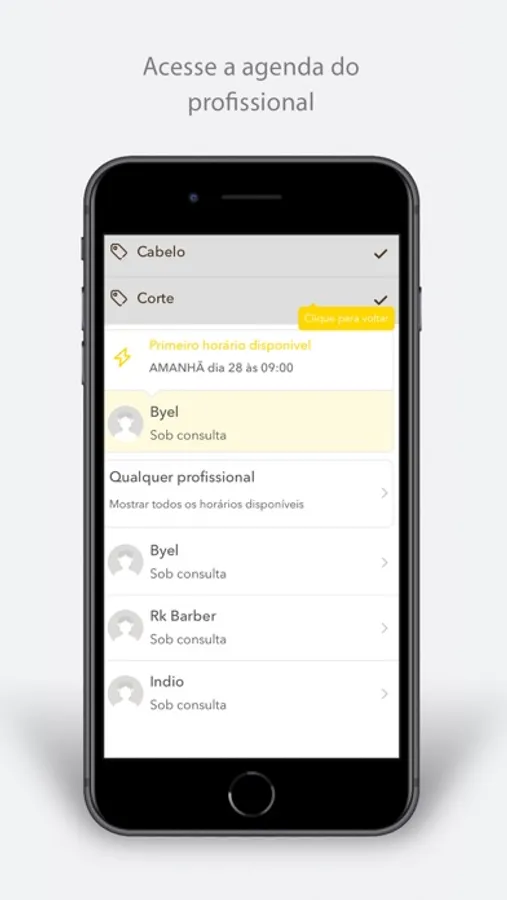 ► Marque horário com seu profissional favorito quando quiser, mesmo que você esteja no trabalho ou fora do horário comercial.