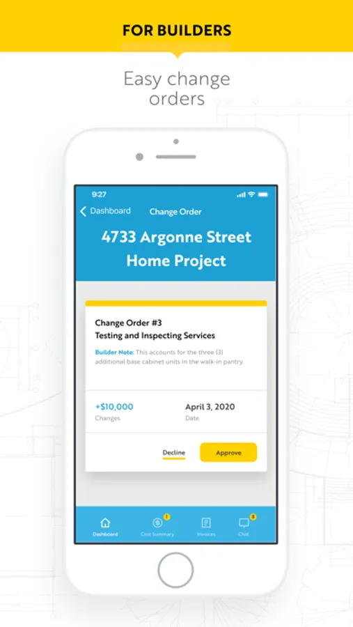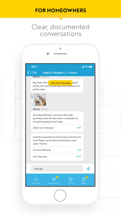 Keel’s project dashboard keeps you in the loop on budgets and progress. Plus, it’s easy to chat with builders directly, send pictures and estimates, and keep the whole conversation in one place.