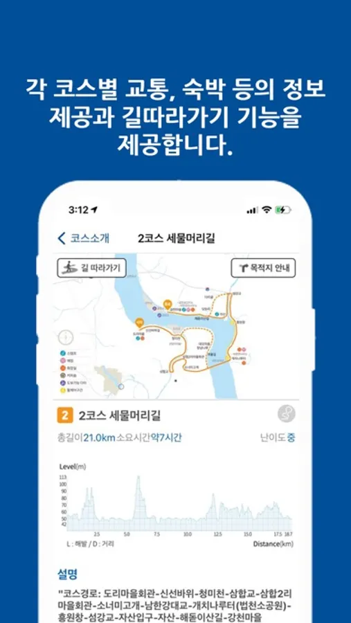 ·길정보서비스: 각 코스별 교통, 숙박 등의 정보 제공기능