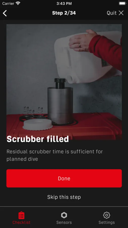 CHECKLISTS - A useful assistant for Divesoft Liberty rebreather owners. The application is used by owners to safely and completely build any Liberty’s configuration. All checklists will be right at your fingertips. The individual steps are accompanied by illustrative photographs and texts that tell the user the correct procedure and make the assembly easy. The calibration is fascilitated by a detailed guide with an interactive calculation of the expected voltage on the sensors exposed to oxygen calibration. Clear control of correct and failed steps. Thanks to the registration of oxygen sensors and their data, you will be notified in time about their replacement.