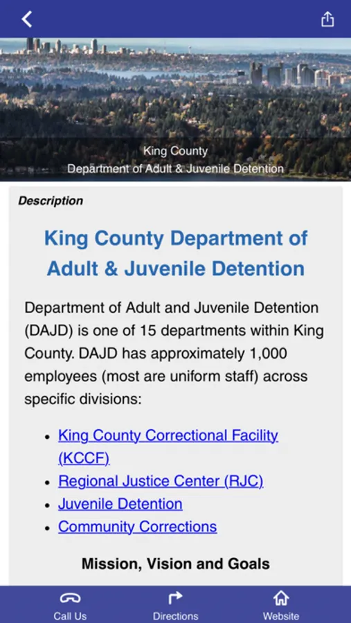 King County Department of Adult and Juvenile Detention contributes to the public safety of the citizens of King County and Washington State by operating safe, secure and humane detention facilities and community corrections programs, in an innovative and cost-effective manner.