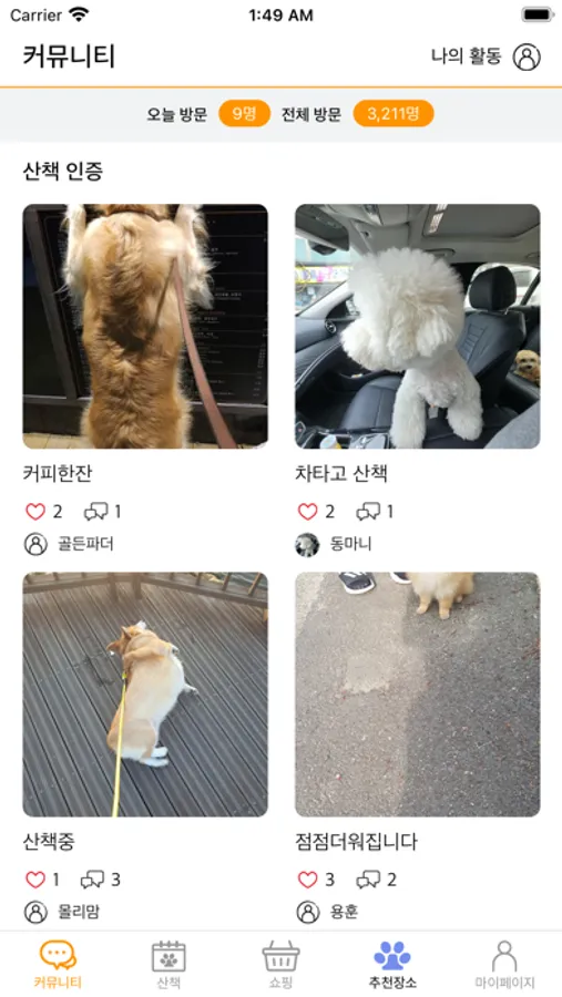 - 하루 20분 행복한 산책을 "산책인증"을 통해 자랑도 하고 포인트도 쌓아보세요.