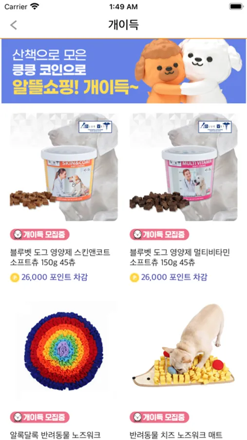 앱에서 포인트를 쌓아 반려용품쇼핑 부터 강아지용품 오프라인 할인까지