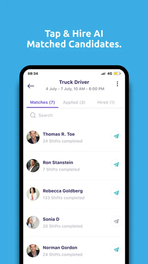 With a simple one-touch you can fill as many light industrial roles and shifts within 8 minutes. With pre-vetted and qualified candidates matched directly to the job needs, you'll fill the roles in no time and reduce unfilled shifts.