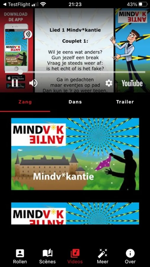 Speel je met jouw klas de musical Mindv*kantie, of ben je gewoon nieuwsgierig? Deze gratis app helpt je en maakt oefenen van de teksten, liedjes en dansjes nog leuker!