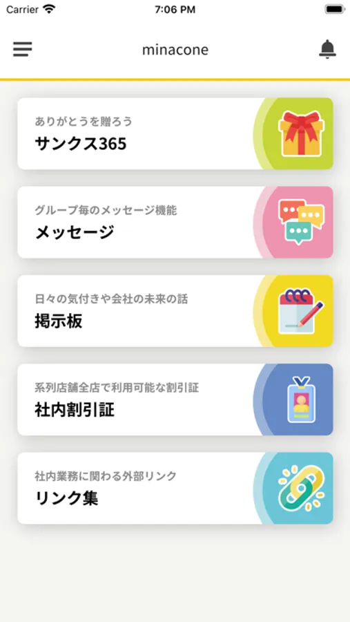「minacone」は感謝や行動指針を送り合う社内活性化ツールです。
