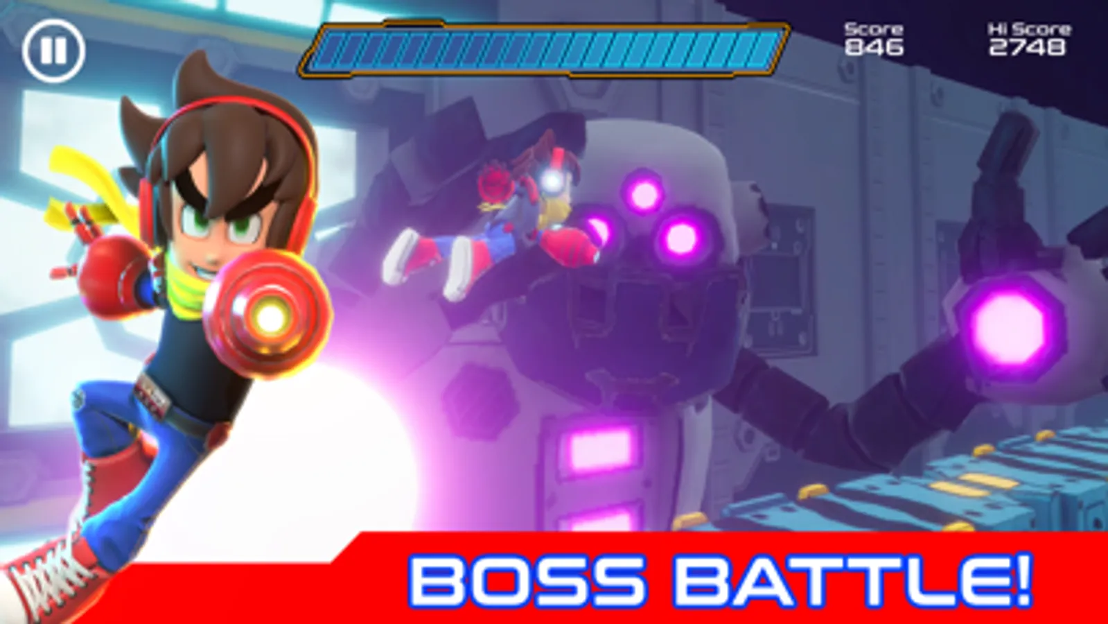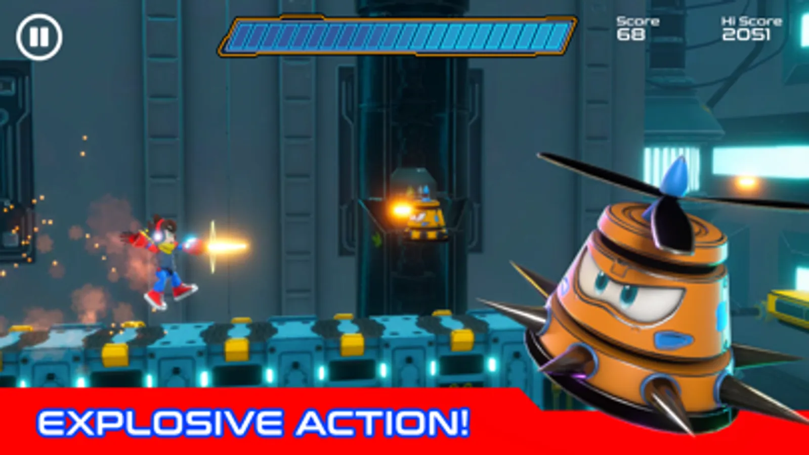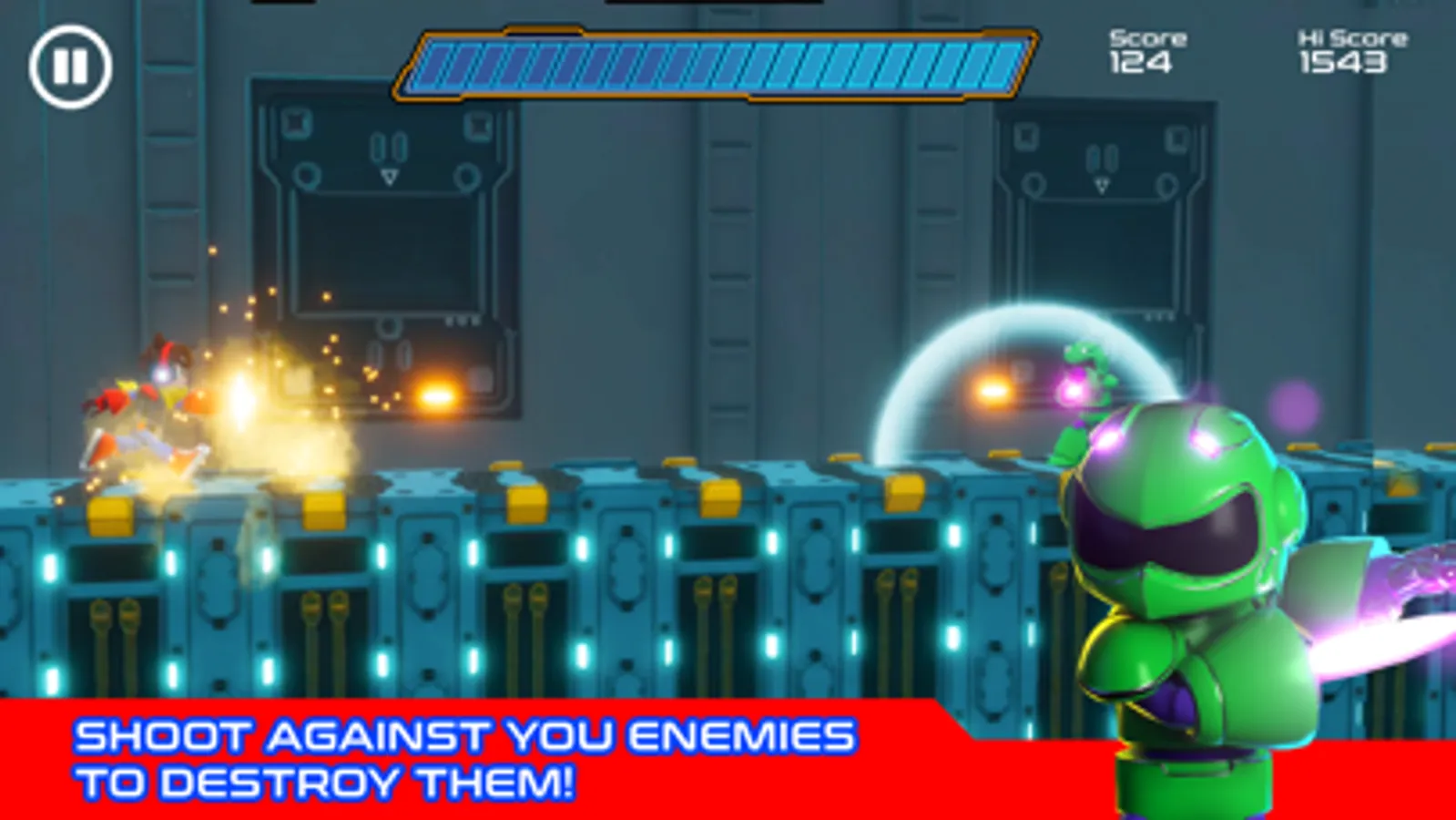 Dash, shot and battle your way through hordes of robots. Test your shooter skills with the retro battles and defeat the epic boss. Use your weapons to finish with all the enemy robots.