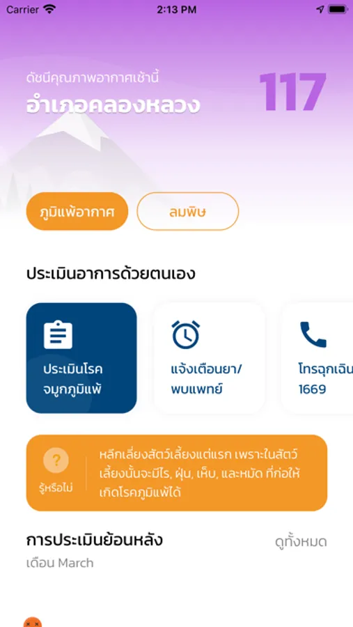 แอปพลิเคชันสำหรับดูแลผู้ที่มีอาการจมูกอักเสพภูมิแพ้และลมพิษ