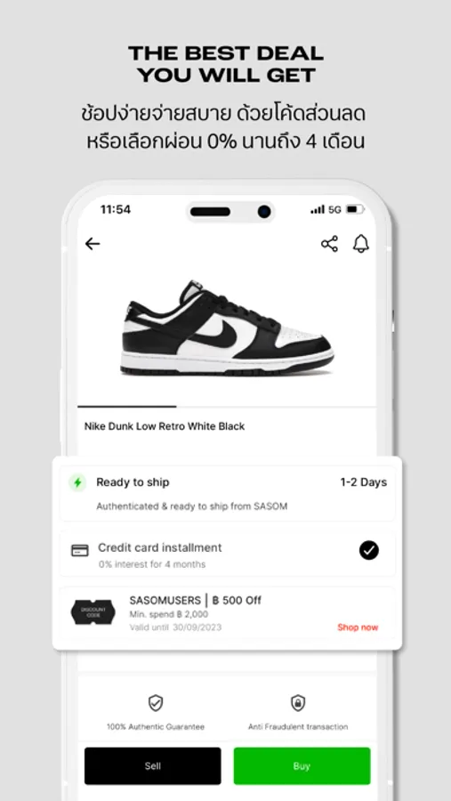SASOM offers worry-free buying and selling experience with reliable legally certified partners. We provide various payments such as credit cards, Truemoney Wallet, 0% installment for 4 months and so on.