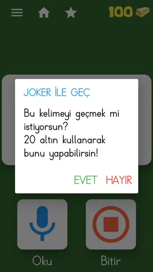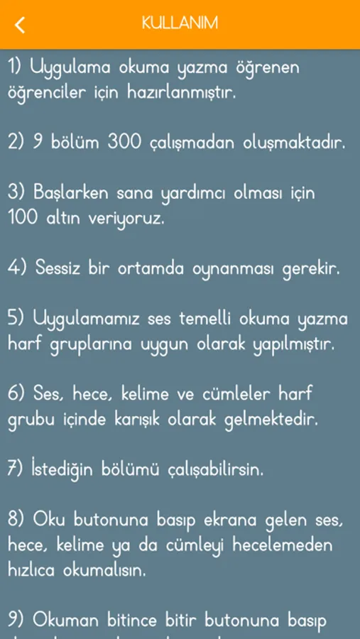 Kendi kendine çalışılabilecek okuma kontrol uygulamasıdır.