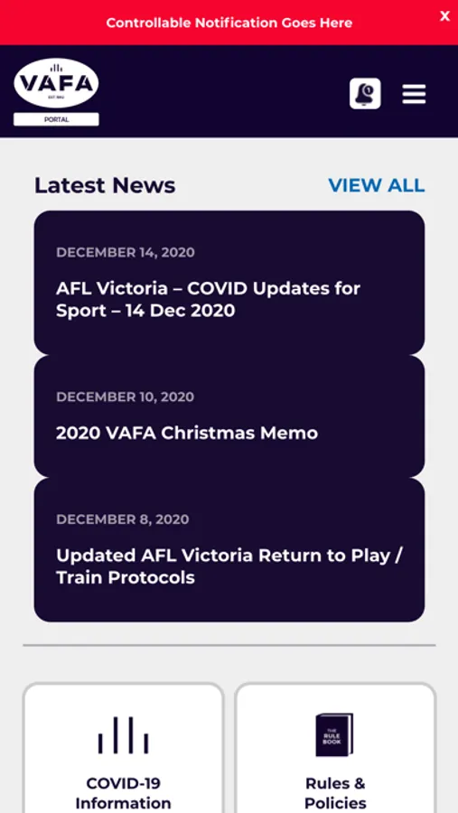 The VAFA Portal, is the official administrative portal for Victorian Amateur Football Association. This portal is primarily used by club representatives, including admin staff, presidents and secretaries for on-going management, news and updates for all things relating to the VAFA.Before downloading this APP, if you are a VAFA club administrator; please contact your local VAFA administrative contact for access to the portal with your own username & password.