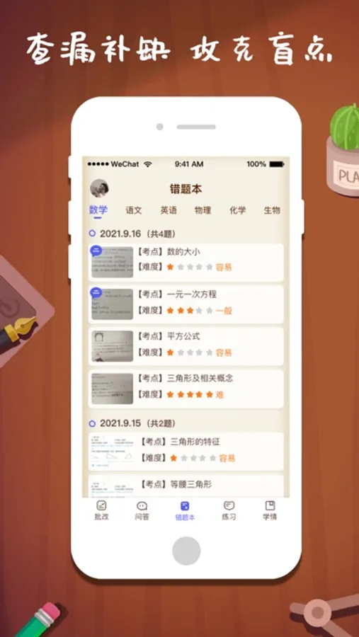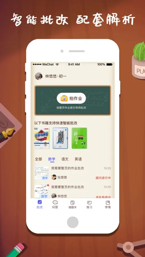 实现作业/练习批改、 1对1实时答疑、举一反三周周测、智能错题本、个性化学情报告等五大功能。
