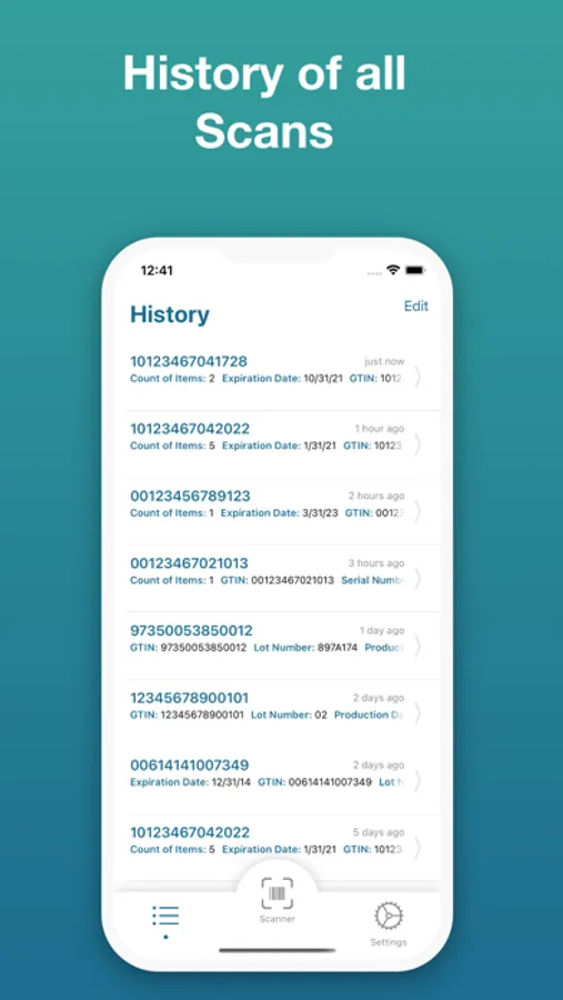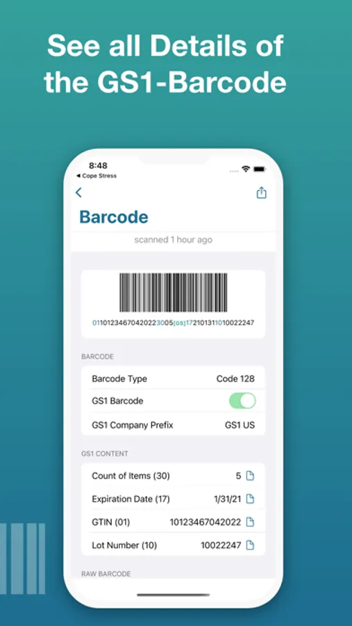 The App will show the contents of any GS1 Barcode, like the GTIN, Expiration Date, Lot or Serial Number. These barcodes are often used on products in B2B areas like the healthcare industry. Have a history of all scanned barcodes and share them with other applications or people, by using the Pretty GS1 Scanner.