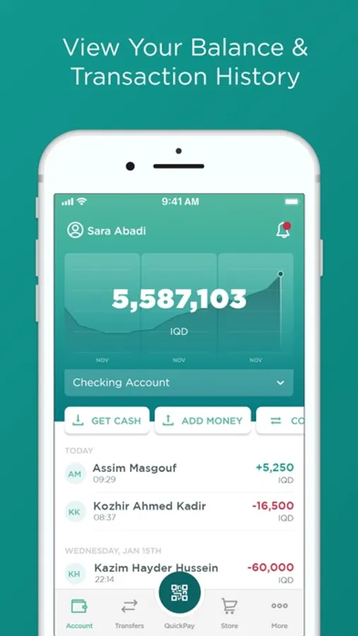 -Deposit. Quickly and conveniently deposit your cash using a wide network of merchants all around Iraq. You can do this by simply showing your unique QR code to the merchant. The balance will be updated instantaneously.