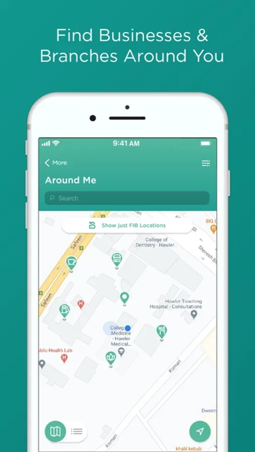 -Find branches and stores. Quickly find our nearest branch office of First Iraqi Bank, where we will be happy to serve you. Looking for the nearest merchant to make a deposit or withdrawal? You can conveniently find them on the map.