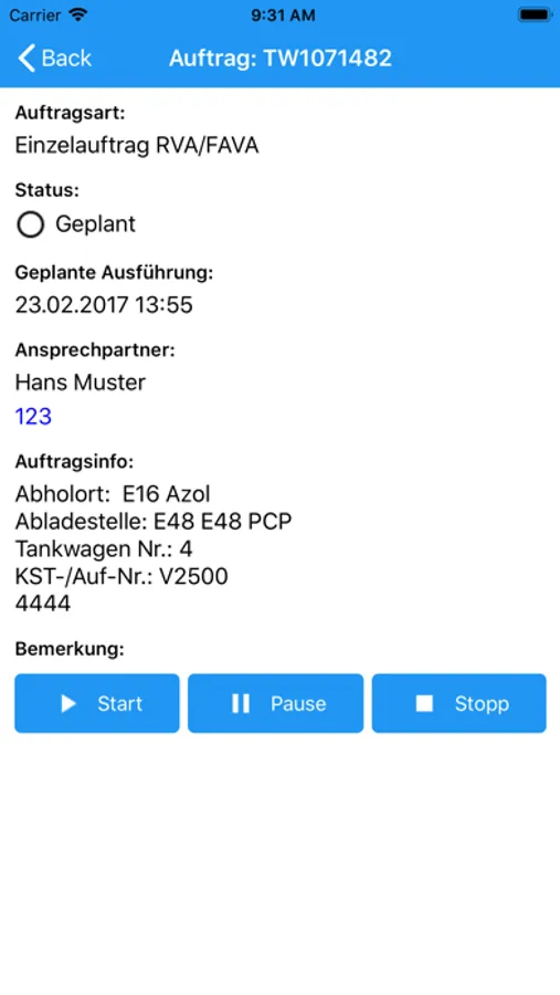 Die UNIMOD Service Mobile App ladet die zugeteilten Aufträge und listet diese auf. In der Detailansicht werden alle wichtigen Informationen zu einem Auftrag angezeigt. Aufträge können abgearbeitet, unterbrochen und abgeschlossen werden.