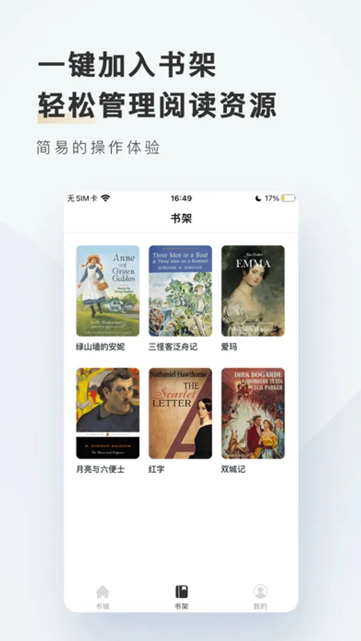 1. 丰富的图书资源, 包含畅销小说、世界名著、牛津书虫、童话故事、爱情小说、推理小说、奇幻小说、名人传记等;