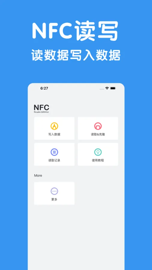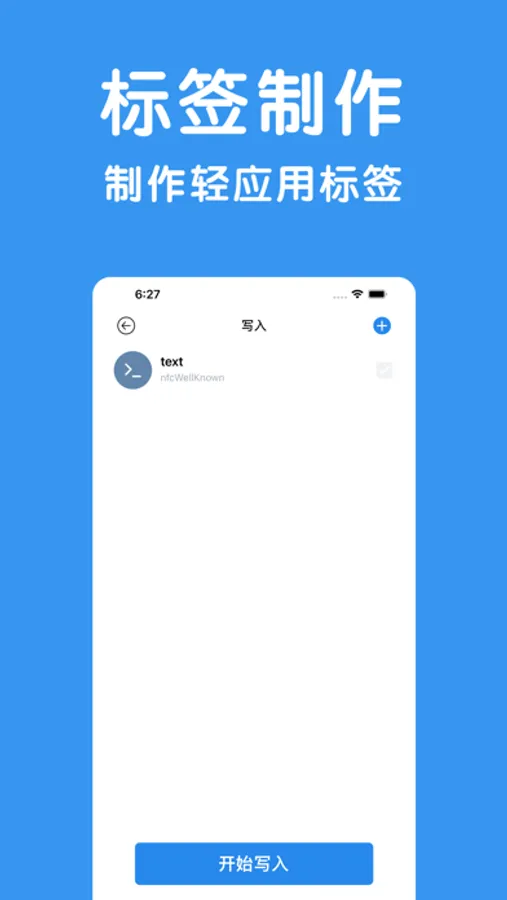 这是一款帮助你写入和读取nfc标签的小工具,你可以使用此产品,将创建的文本数据写入到标签中,在支持nfc的手机设备上即可读取内容或打开轻应用。