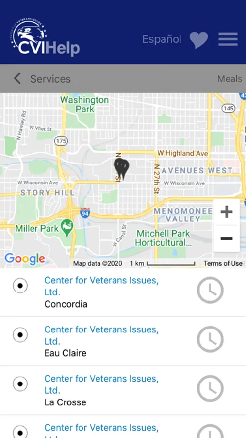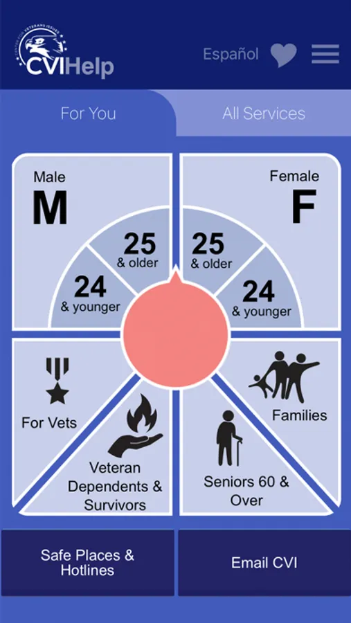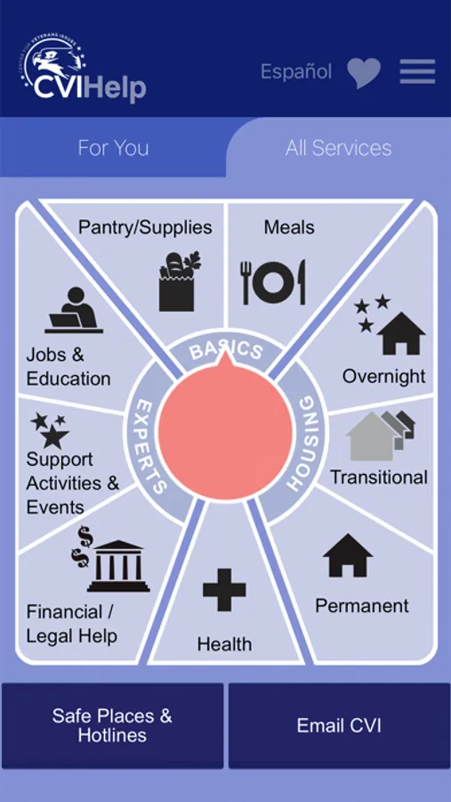 CVIHelp provides for quick access to help in Wisconsin with housing, food, finances, health and veteran's issues. The app opens with a "For You" dial enabling quick filtering of results. Or you can go directly to the "All Services" tab. Results are mapped as well as listed in distance order from your location. You also have the option of changing your location. At the bottom of the opening screen are two buttons for urgent issues: one for "Safe Places & Hotlines" and the other for emailing professional staff at the Center for Veterans Issues who will respond to your need during regular business hours.