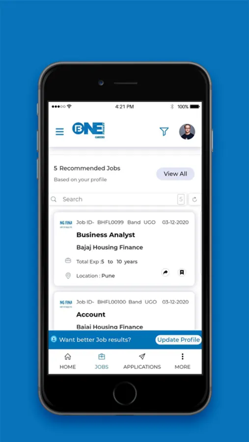 With this intuitive platform, you can stay updated on the go, about the latest openings across different functions and businesses to help you accelerate your career, learn and progress within the One Finserv family.