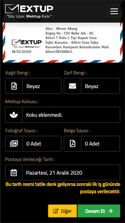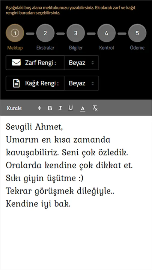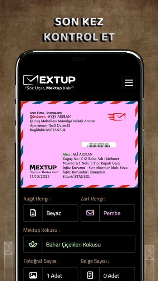 Oturduğunuz yerden dilediğiniz adrese kolayca mektup yazın ve gönderin. Uygulamamız üzerinden yazacağınız mektubun gerçek hali özel yazıcılar aracılığıyla basılıp zarflanır ve postaya verilir. Daha sonrasında takip kodunuz SMS olarak gönderilmektedir. Kağıt ve kalemle uğraşmanıza gerek kalmadan mektubunuz adrese teslim edilir. İşte hepsi bu kadar!