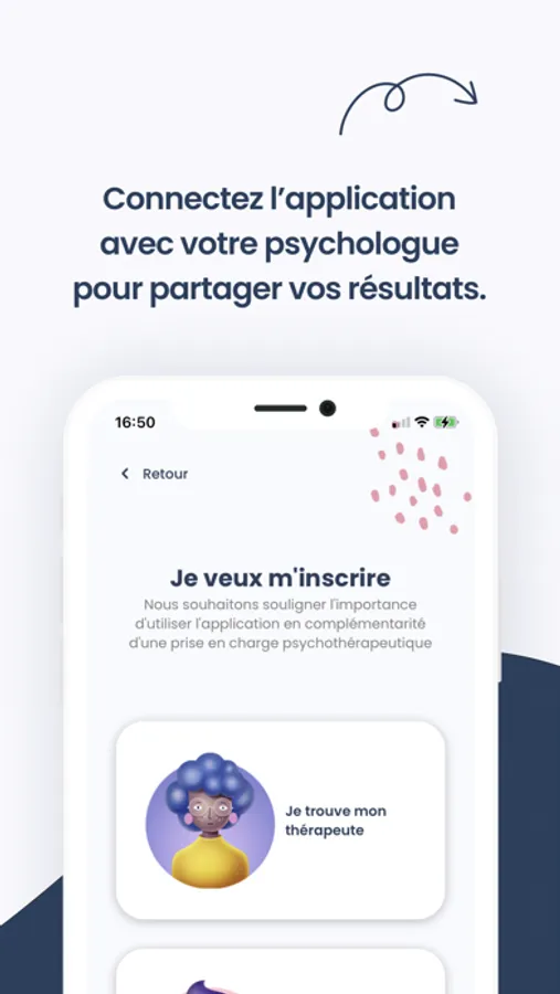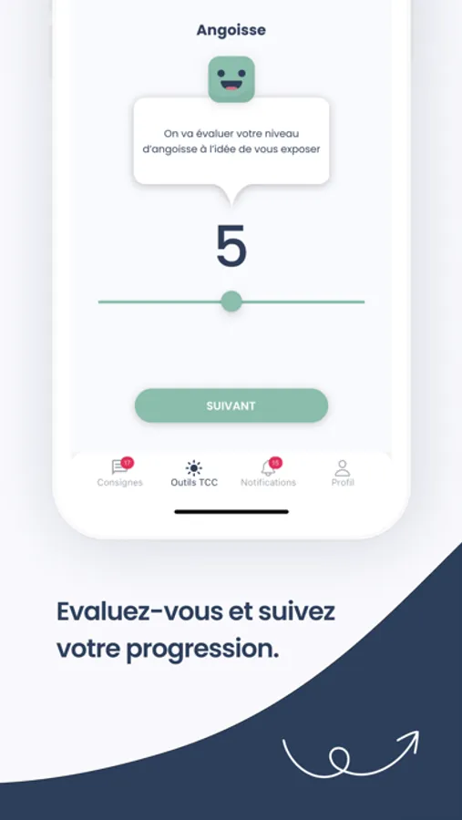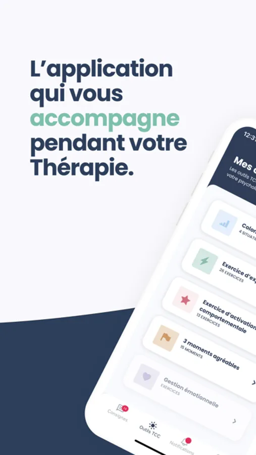 AppCBT is the first mobile application that accompanies the patient during his or her behavioral and cognitive therapy and facilitates follow-up with the therapist.