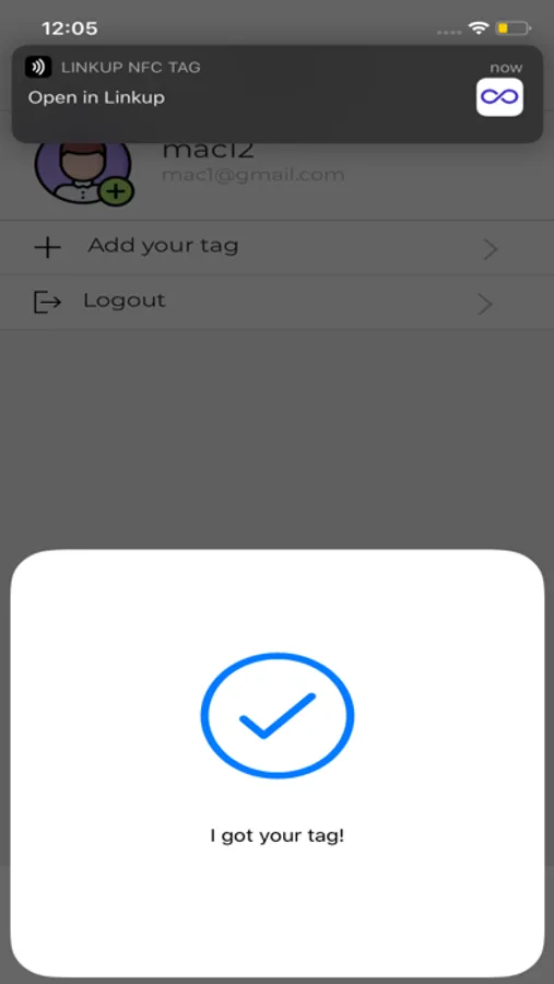 If you have a Link Up NFC tag, you can attach it to the back of your phone and that makes link sharing even easier. Just tap your tag onto someone's phone and your Link Up profile will pop up.