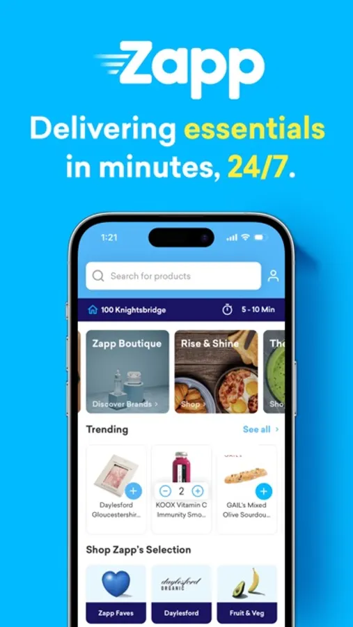 Zapp delivers what you want, when you need it. Your favourite drinks, snacks, fresh groceries, ice cream, pharmacy, baby, pet essentials - and so much more. Delivered to your door in minutes, 24/7.