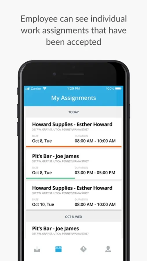 The mobile app is used by customers who engage with Shackleton, LLC in customizing an on-demand workforce platform for their employees
