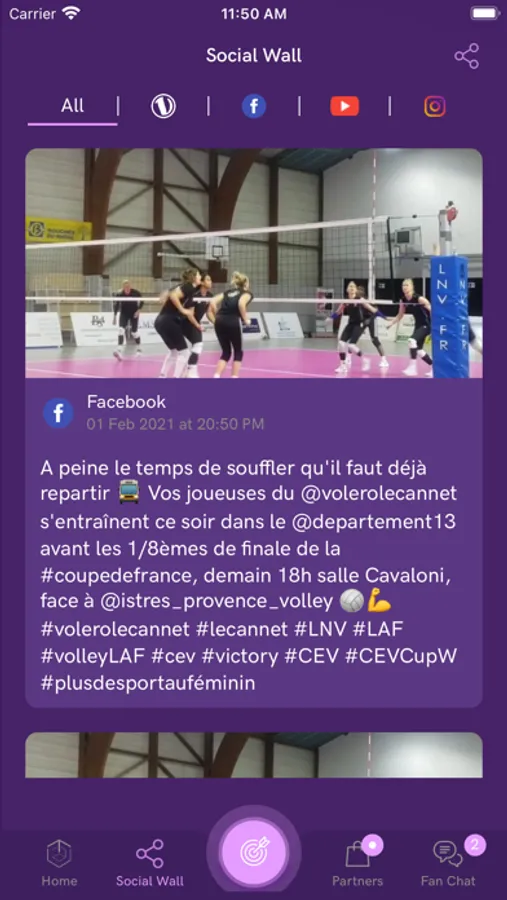 - Learn more about the team and the players with the Social Wall section, updated with the official feeds of Volero Le Cannet. Be the first to know about the latest news about the team or the players.