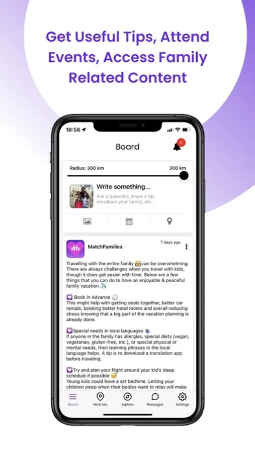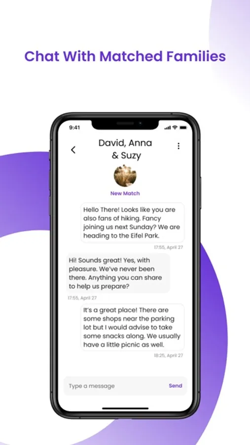 • Find matching families nearby and arrange meetups, dinners, hiking trips, whatever you like!
