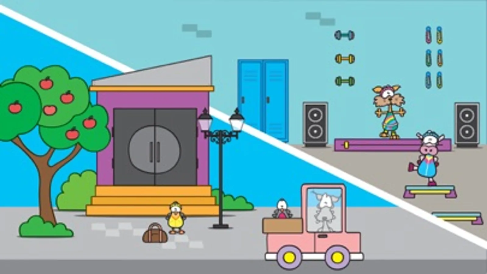 Hang along with the charming Nampa characters and start your visit with a self-made smoothie and a delicious cake at the local café. Then cruise around in a car of your choice and park it outside of the dance studio where a session of 80’s disco aerobics will follow. You decide the outfits, moves as well as the pace!