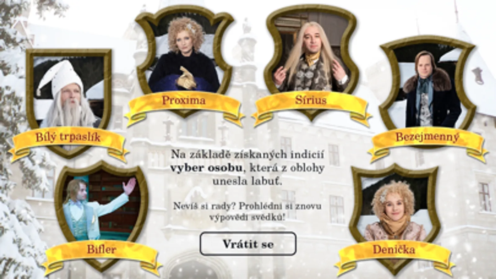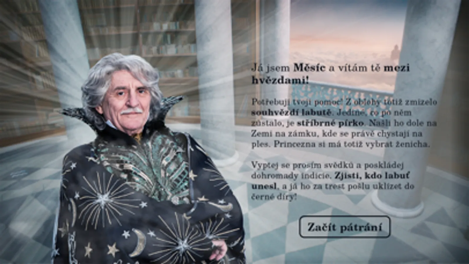 Na zámecký ples se chystají všichni – pozemšťané i hvězdy žijící na obloze. Jenže ouha! V předvečer plesu náhle z oblohy zmizelo souhvězdí labutě. Všichni podezřelí jsou už na plese. Vydej se za nimi, odemkni zašifrované dveře, poskládej indicie a odhal pachatele. Šifrovací hra ke štědrovečerní pohádce O vánoční hvězdě.
