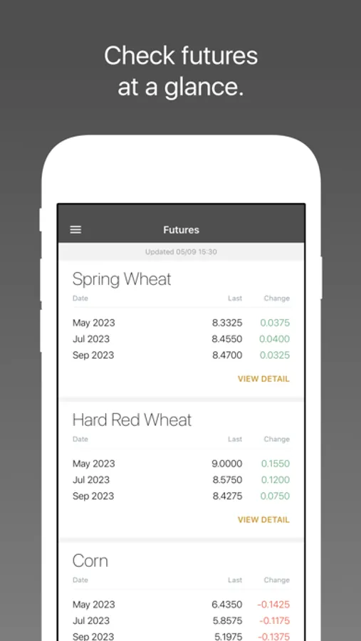 Futures: See Grains, Feed, Livestock, and Ethanol futures listed in order of your preference