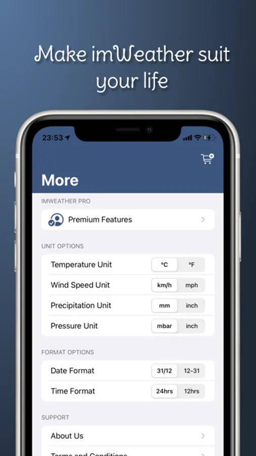 No matter you are from the US, Asia, Europe, or other beautiful horizons, info that suits your taste is critical. We provide easy unit conversion which brings imWeather to your life. Extensive customization will come further down the road, but we assure you the spirit of imWeather will never die.