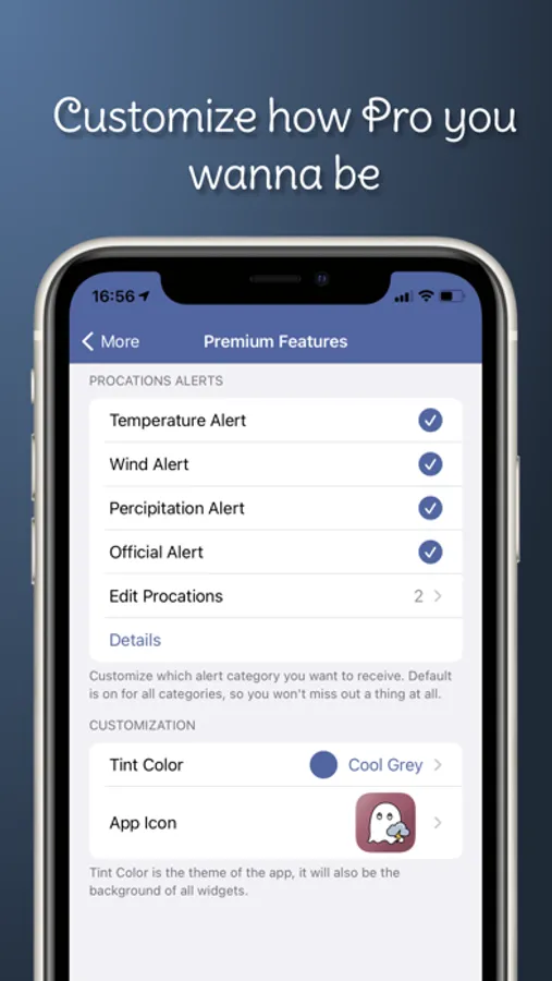 imWeather Pro brings you exclusive features beyond your imagination. From Procations to customizations, imWeather Pro got your back. Procations is a forecast alert system, preparing you for the immediate and future weather.