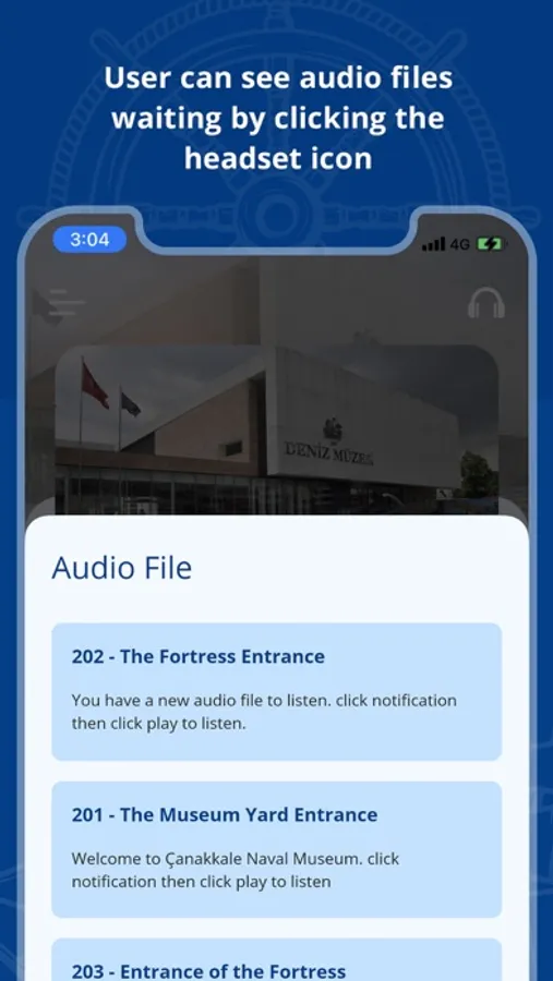 This application has been developed for visitors who visited İstanbul, Çanakkale, İskenderun and Mersin Naval Museums operating under the Turkish Naval Forces to easily access audio, written and visual explanations of the objects exhibited in the museum they visit from their smartphones that can be connected to the internet. It is working as an audio guide system developed using beacon technology for museum and indoor activities.